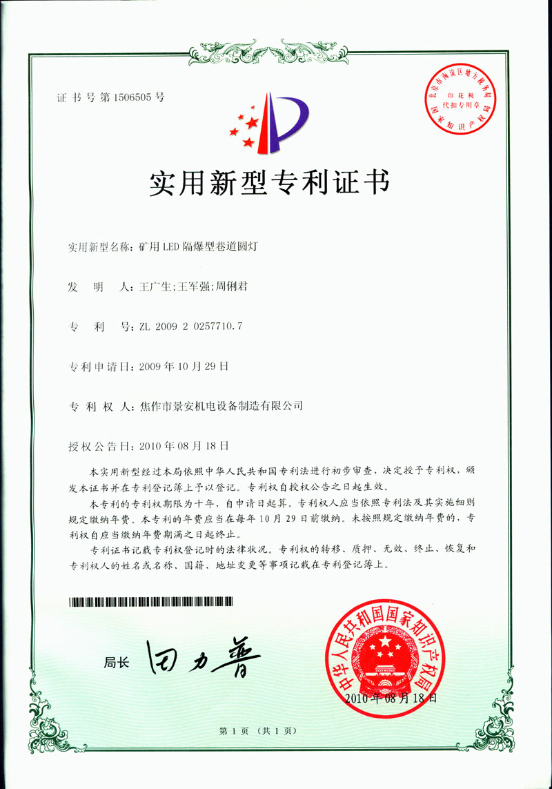 焦作景安公司始終堅持“以科技為先導,以市場為導向”的發(fā)展戰(zhàn)略,不斷進行新產品的研制和開發(fā),在國家“六五”到“九五”期間,承擔和參與了國家多項科技攻關項目,產品的技術和質量一直處于全國同行業(yè)領先位置。并被中國電器工業(yè)協(xié)會評定為“質量可信產品”。特別是在礦用防爆燈領域,礦用隔爆型半導體(LED)照明燈具,2008年列入國家火炬計劃,獲2009年河南省工業(yè)和信息化廳的科技成果二等獎,并擁有多項國家專利。